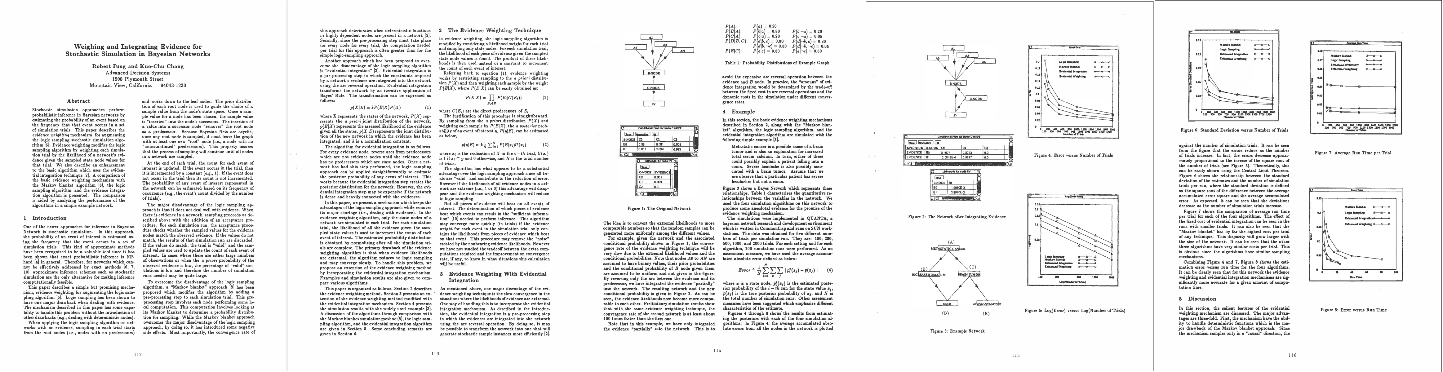 Stochastic simulation approaches perform probabilistic inference in Bayesian networks by estimating the probability of an event based on the frequency that the event occurs in a set of simulation trials. This paper describes the evidence weighting mechanism, for augmenting the logic sampling stochastic simulation algorithm [Henrion, 1986]. Evidence weighting modifies the logic sampling algorithm by weighting each simulation trial by the likelihood of a network's evidence given the sampled state node values for that trial. We also describe an enhancement to the basic algorithm which uses the evidential integration technique [Chin and Cooper, 1987]. A comparison of the basic evidence weighting mechanism with the Markov blanket algorithm [Pearl, 1987], the logic sampling algorithm, and the evidence integration algorithm is presented. The comparison is aided by analyzing the performance of the algorithms in a simple example network.