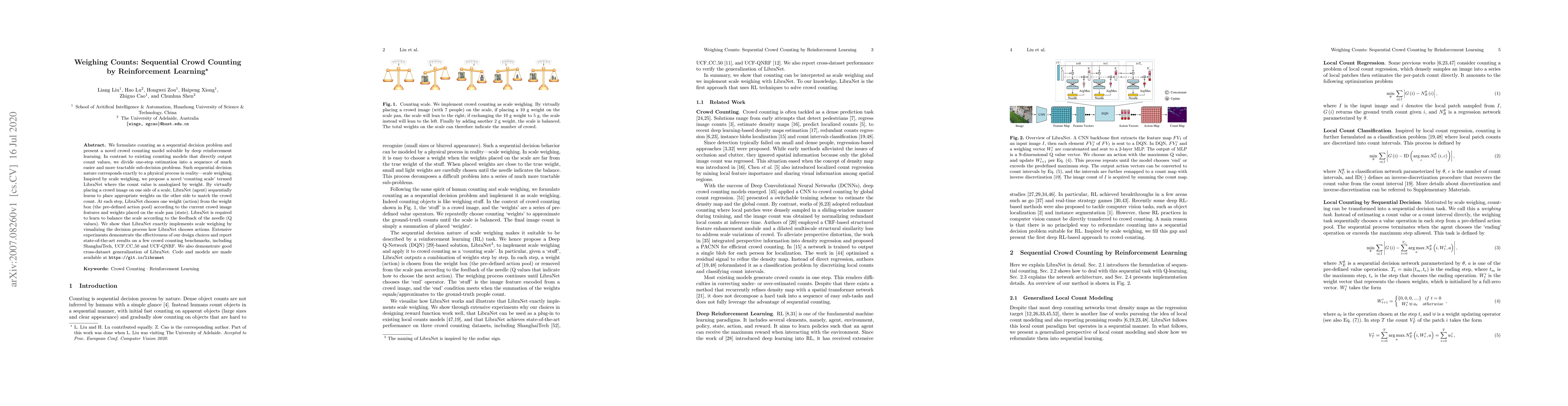 This paper introduces LibraNet, a novel reinforcement learning model for crowd counting based on a sequential decision-making approach inspired by scale weighing. LibraNet sequentially estimates crowd counts by balancing weights, achieving state-of-the-art results on benchmark datasets and demonstrating good generalization.
