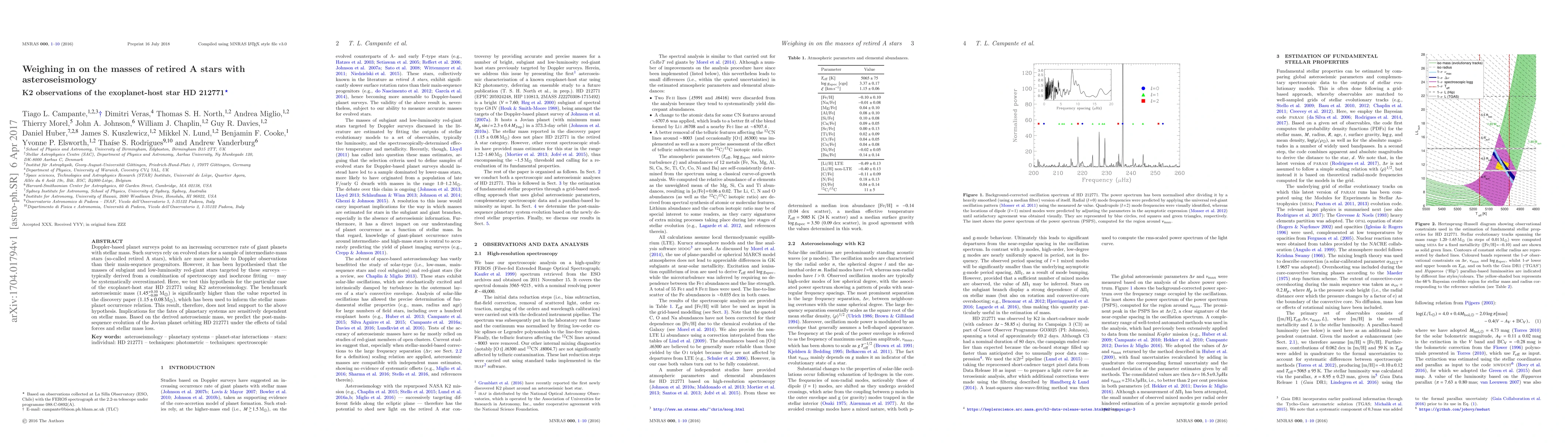 Doppler-based planet surveys point to an increasing occurrence rate of giant planets with stellar mass. Such surveys rely on evolved stars for a sample of intermediate-mass stars (so-called retired A stars), which are more amenable to Doppler observations than their main-sequence progenitors. However, it has been hypothesised that the masses of subgiant and low-luminosity red-giant stars targeted by these surveys --- typically derived from a combination of spectroscopy and isochrone fitting --- may be systematically overestimated. Here, we test this hypothesis for the particular case of the exoplanet-host star HD 212771 using K2 asteroseismology. The benchmark asteroseismic mass ($1.45^{+0.10}_{-0.09}\:\text{M}_{\odot}$) is significantly higher than the value reported in the discovery paper ($1.15\pm0.08\:\text{M}_{\odot}$), which has been used to inform the stellar mass-planet occurrence relation. This result, therefore, does not lend support to the above hypothesis. Implications for the fates of planetary systems are sensitively dependent on stellar mass. Based on the derived asteroseismic mass, we predict the post-main-sequence evolution of the Jovian planet orbiting HD 212771 under the effects of tidal forces and stellar mass loss.