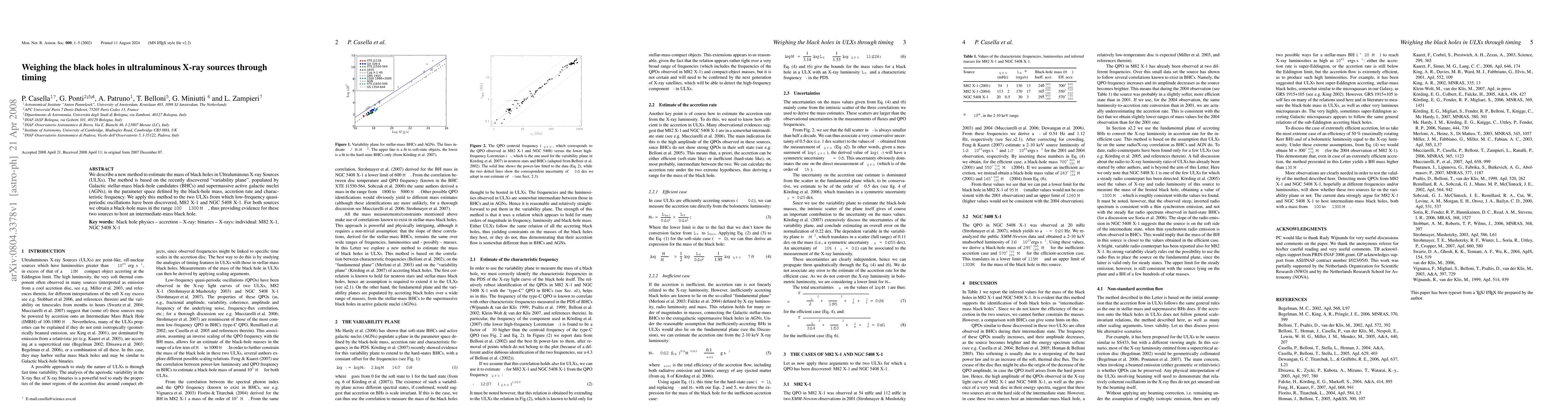 This paper introduces a novel method to estimate the mass of black holes in Ultraluminous X-ray Sources (ULXs) using the "variability plane" in mass, accretion rate, and frequency. Applying this method to M82 X-1 and NGC 5408 X-1, the researchers find evidence suggesting these ULXs host intermediate-mass black holes in the range of 100 to 1300 solar masses.