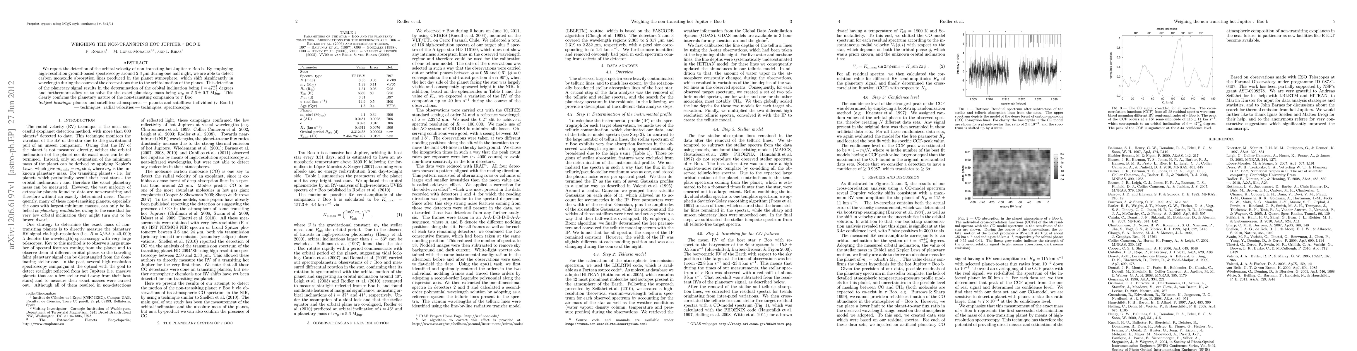 This study detects the orbital velocity of the non-transiting hot Jupiter Tau Boo b using high-resolution spectroscopy, revealing carbon monoxide absorption lines. The analysis determines the orbital inclination and solves for the planet's mass, confirming Tau Boo b as a genuine planet with a mass of 5.6 MJup.