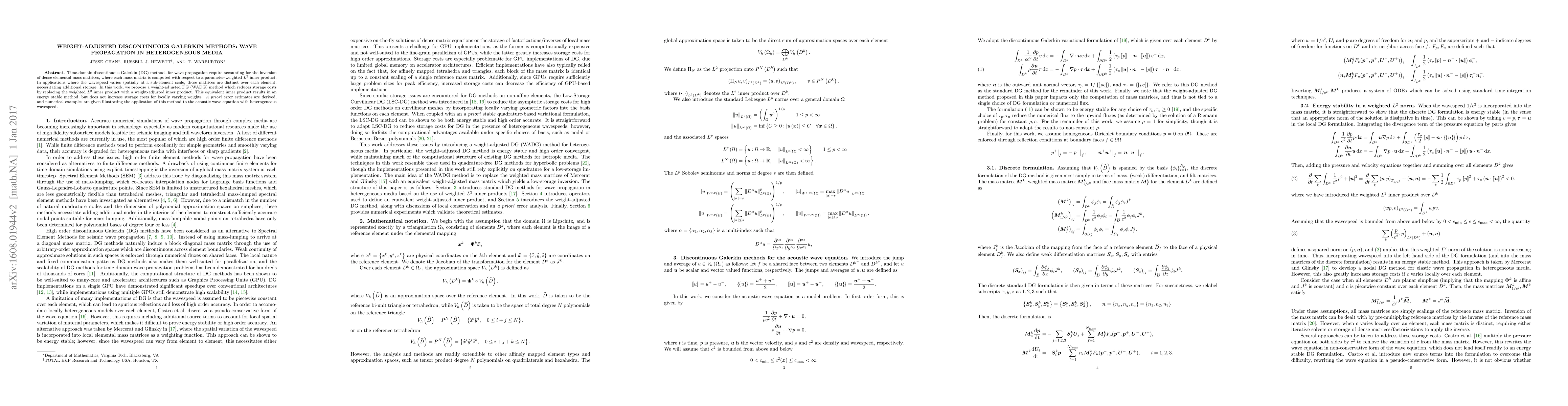 The paper presents a weight-adjusted inner product approach to reduce storage costs in discontinuous Galerkin methods for wave propagation in heterogeneous media, maintaining energy stability and high-order accuracy.