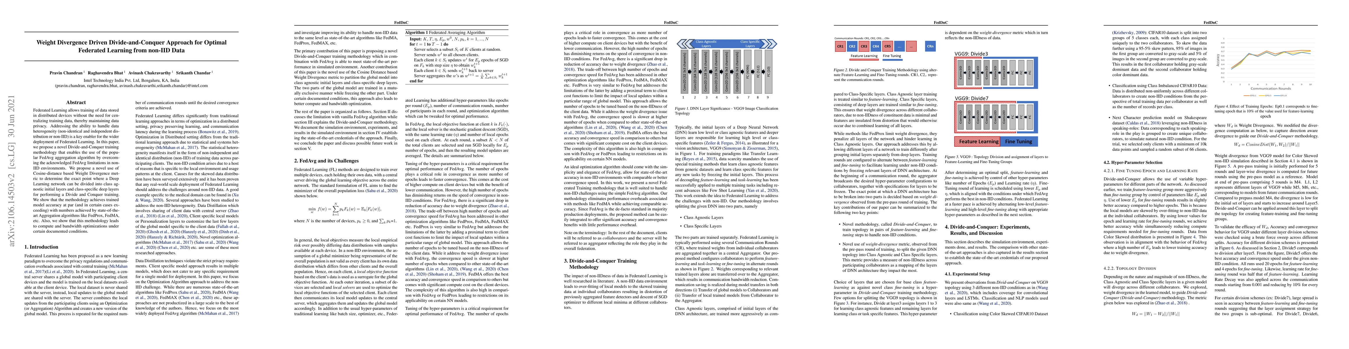 This paper proposes a novel Divide-and-Conquer approach for Federated Learning that leverages a Cosine-distance based Weight Divergence metric to optimize model training on non-IID data, achieving competitive accuracy and efficiency improvements over existing aggregation methods.
