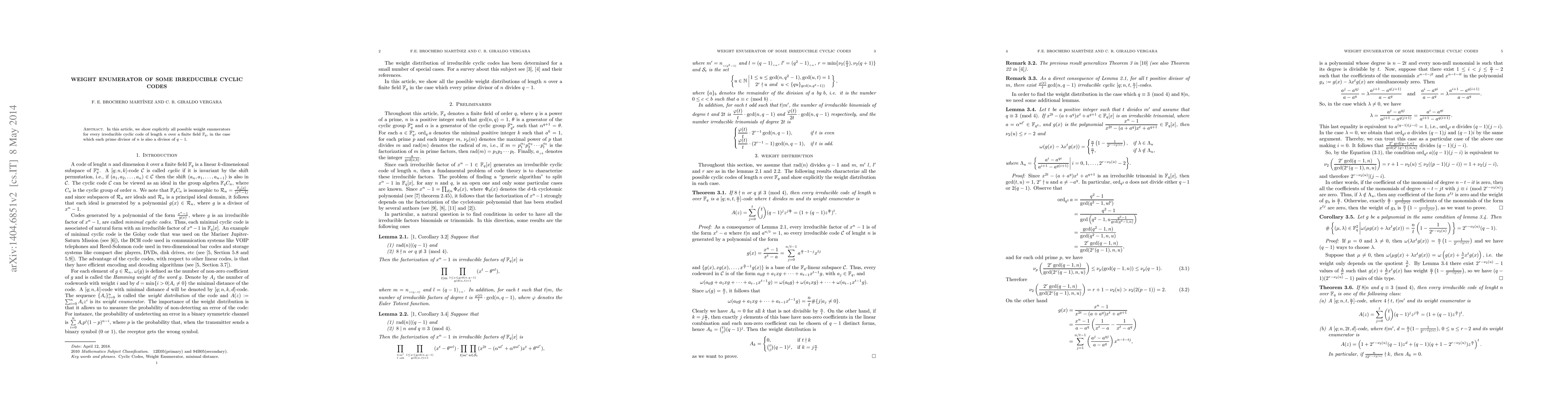 This paper identifies and explicitly lists all possible weight enumerators for irreducible cyclic codes of length $n$ over $\mathbb F_q$, under the condition that each prime divisor of $n$ also divides $q-1$. The findings provide a comprehensive understanding of the weight distribution for these codes.