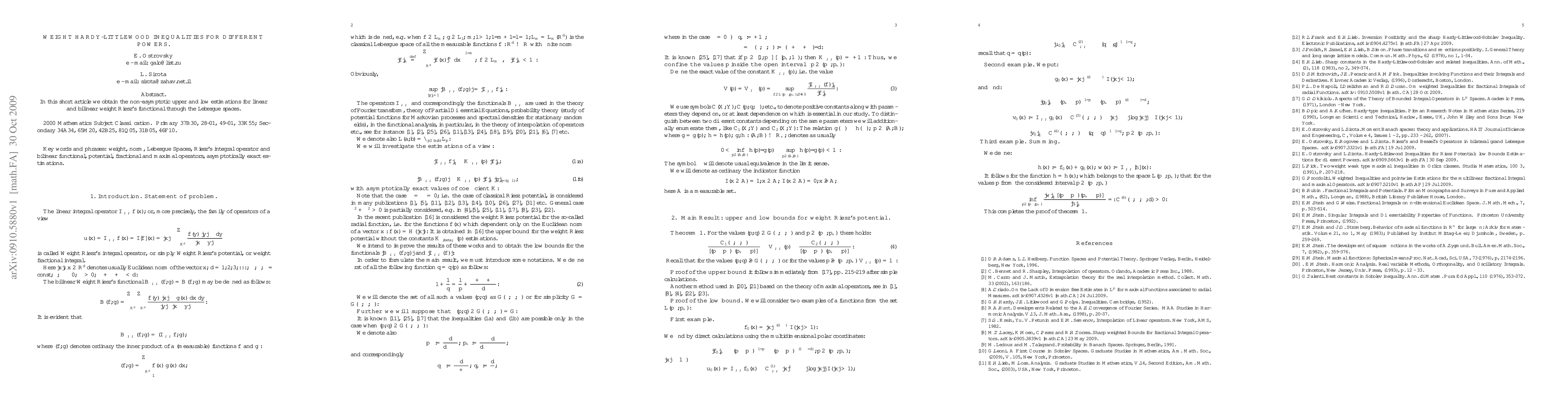 In this short article we obtain the non-asymptotic upper and low estimations for linear and bilinear weight Riesz's functional through the Lebesgue spaces.