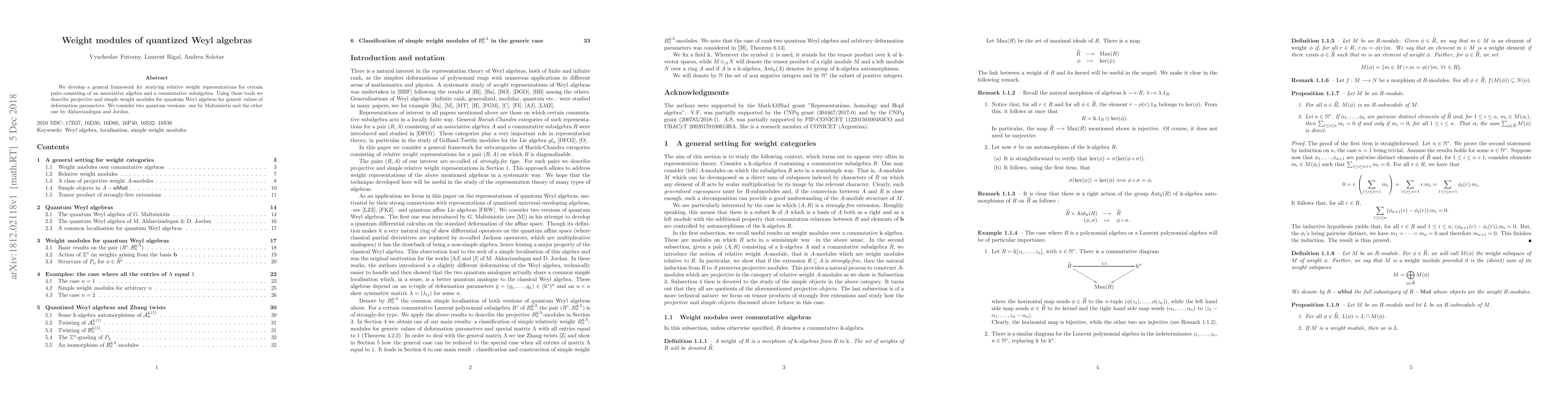 We develop a general framework for studying relative weight representations for certain pairs consisting of an associative algebra and a commutative subalgebra. Using these tools we describe projective and simple weight modules for quantum Weyl algebras for generic values of deformation parameters. We consider two quantum versions: one by Maltsiniotis and the other one by Akhavizadegan and Jordan.
