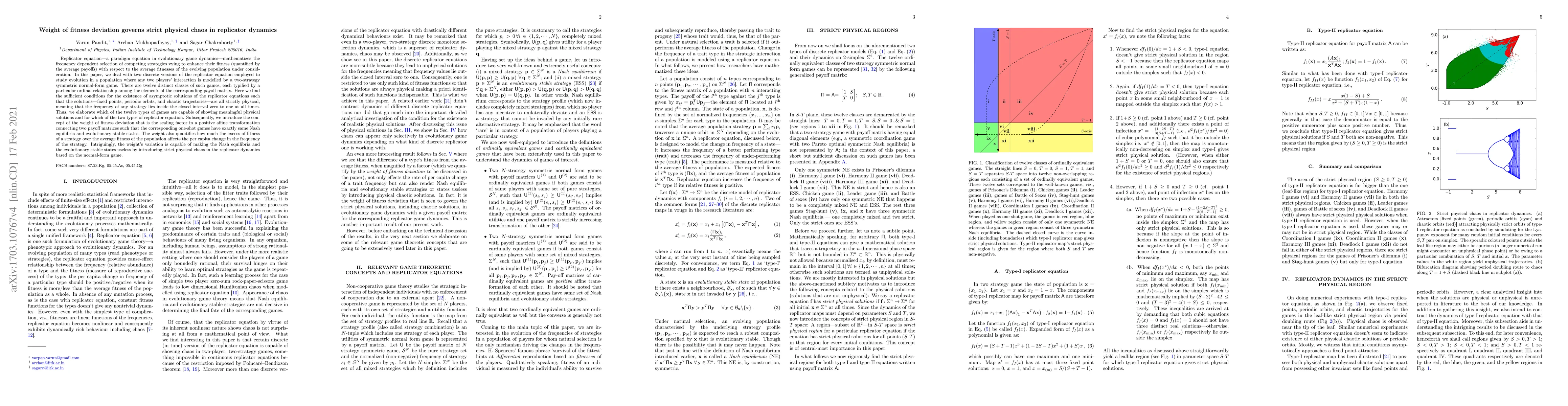 This paper investigates the dynamics of replicator equations in evolutionary game theory, focusing on twelve classes of two-strategy symmetric normal-form games. It identifies conditions for the existence of strictly physical solutions and introduces the concept of the weight of fitness deviation, which quantifies the impact of fitness excess on strategy frequency changes, potentially leading to strict physical chaos in the replicator dynamics.
