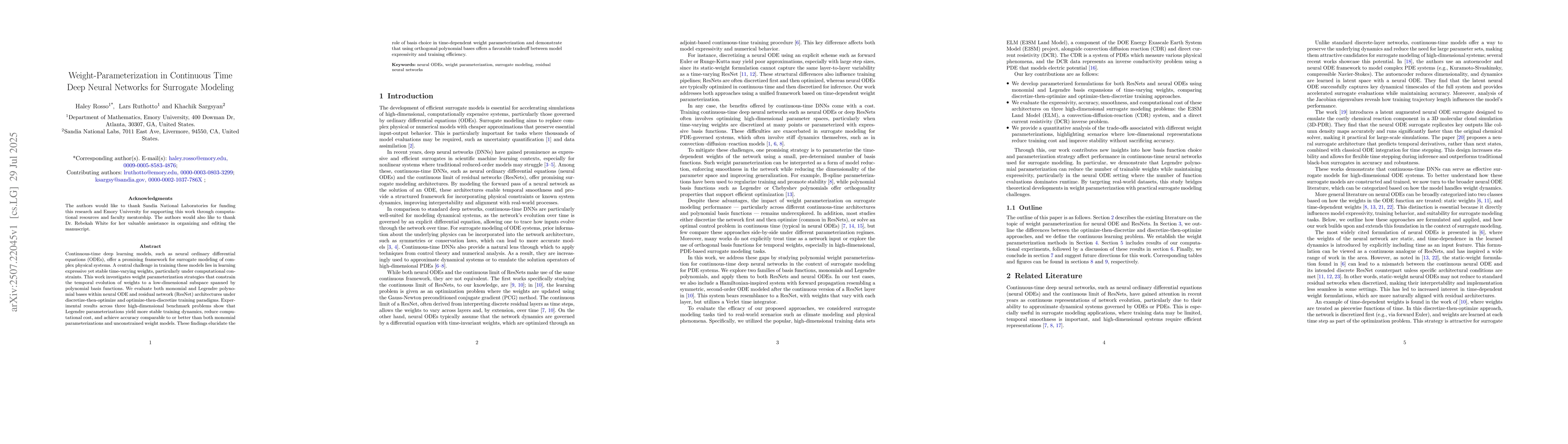 This research investigates weight parameterization strategies for continuous-time deep learning models, specifically neural ODEs and ResNet architectures, focusing on monomial and Legendre polynomial bases. It evaluates these strategies under discretize-then-optimize and optimize-then-discretize training paradigms across three high-dimensional benchmark problems.