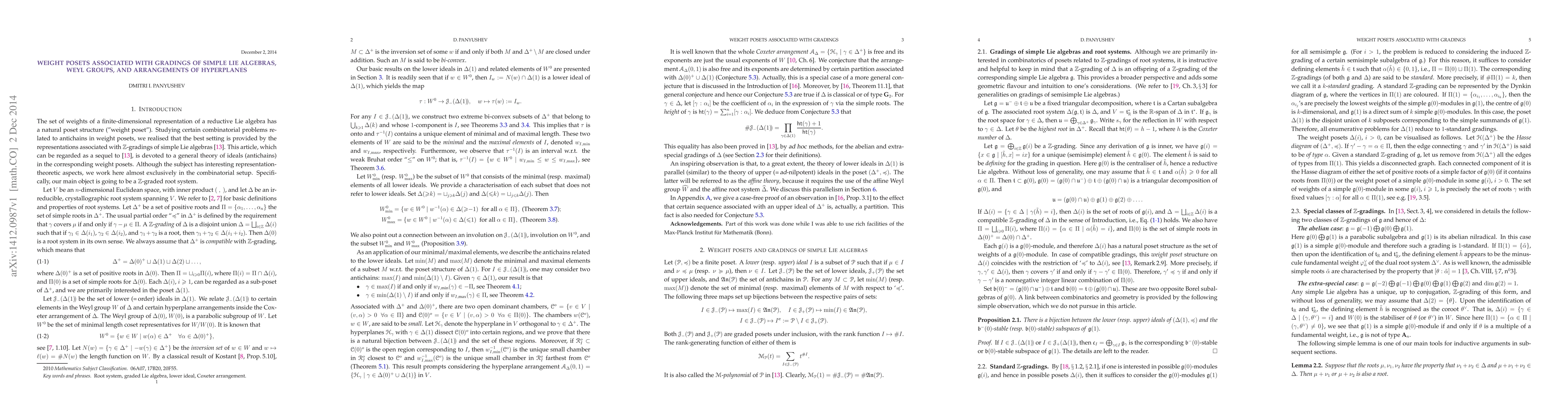 This paper explores the combinatorial structure of weight posets in representations associated with $\mathbb{Z}$-gradings of simple Lie algebras, establishing a bijection between lower ideals in these posets and elements of the corresponding Weyl group. It draws parallels between the theory of lower ideals and upper ideals in the poset of positive roots.