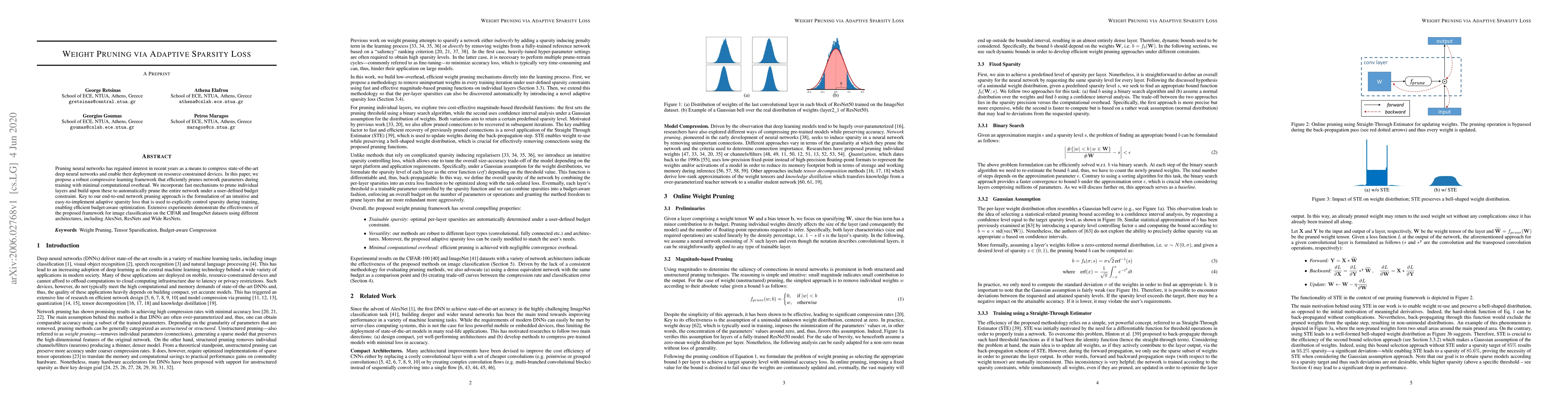 This paper proposes a compressive learning framework for efficient neural network pruning using adaptive sparsity loss, enabling minimal computational overhead. The framework effectively prunes entire networks under budget constraints, demonstrated through improved performance on CIFAR and ImageNet datasets.