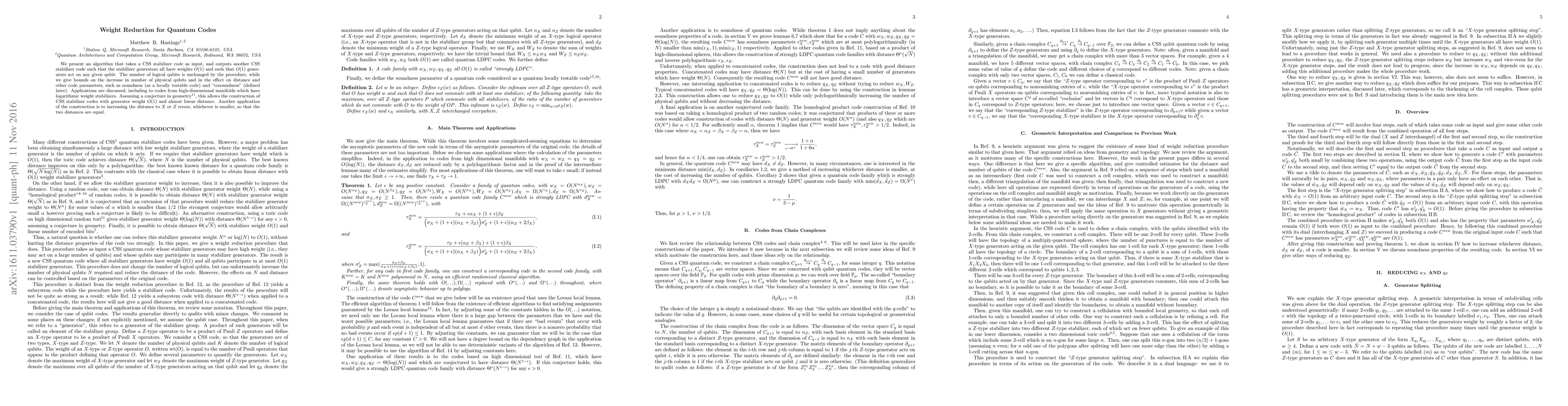 We present an algorithm that takes a CSS stabilizer code as input, and outputs another CSS stabilizer code such that the stabilizer generators all have weights $O(1)$ and such that $O(1)$ generators act on any given qubit. The number of logical qubits is unchanged by the procedure, while we give bounds on the increase in number of physical qubits and in the effect on distance and other code parameters, such as soundness (as a locally testable code) and "cosoundness" (defined later). Applications are discussed, including to codes from high-dimensional manifolds which have logarithmic weight stabilizers. Assuming a conjecture in geometry\cite{hdm}, this allows the construction of CSS stabilizer codes with generator weight $O(1)$ and almost linear distance. Another application of the construction is to increasing the distance to $X$ or $Z$ errors, whichever is smaller, so that the two distances are equal.
