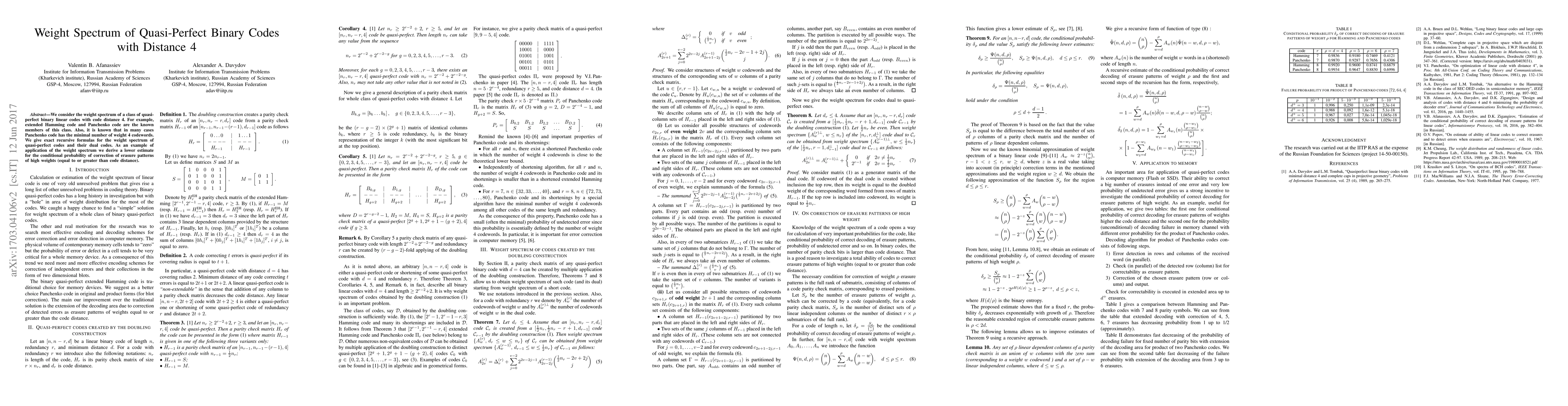This paper provides exact recursive formulas for the weight spectrum of quasi-perfect binary linear codes with distance 4, such as extended Hamming and Panchenko codes, and demonstrates their application in deriving a lower estimate for the conditional probability of correcting erasure patterns of high weights.
