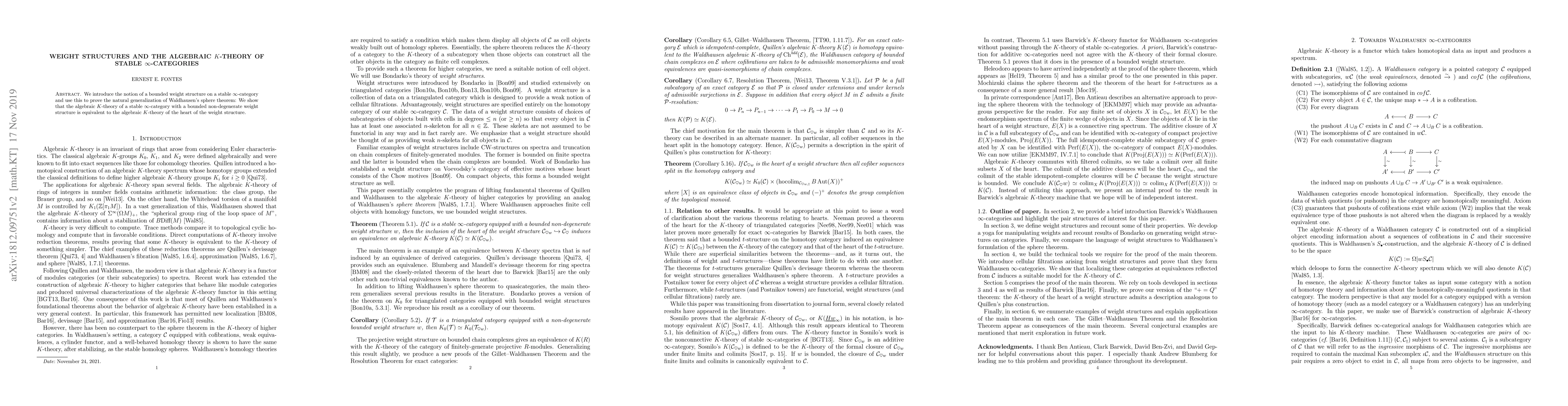 Summary: This paper introduces a bounded weight structure on stable $\infty$-categories and uses it to generalize Waldhausen's sphere theorem, proving that the algebraic $K$-theory of such categories matches that of their weight structure hearts.
