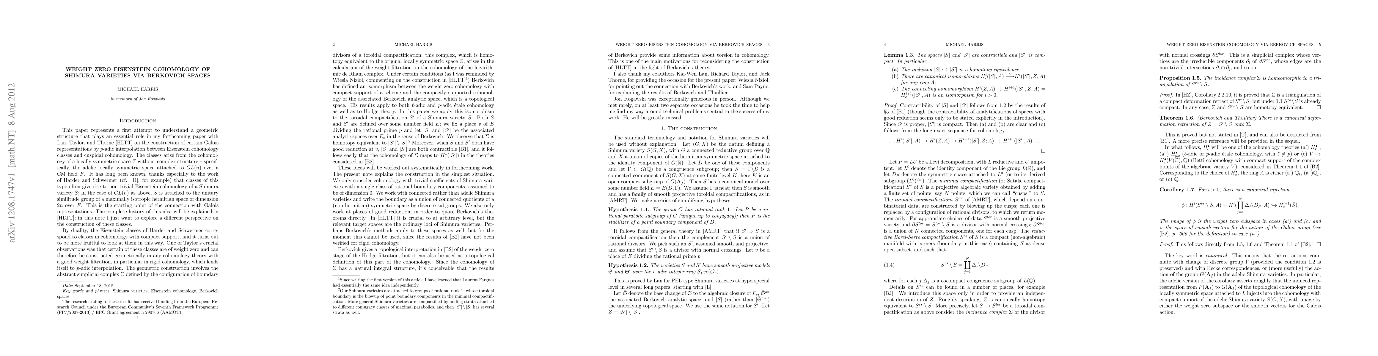 This brief article gives an alternative interpretation, based on a theorem of Berkovich, of the Eisenstein classes in the cohomology of Shimura varieties, used in forthcoming work of the author with K. W. Lan, R. Taylor, and J. Thorne.