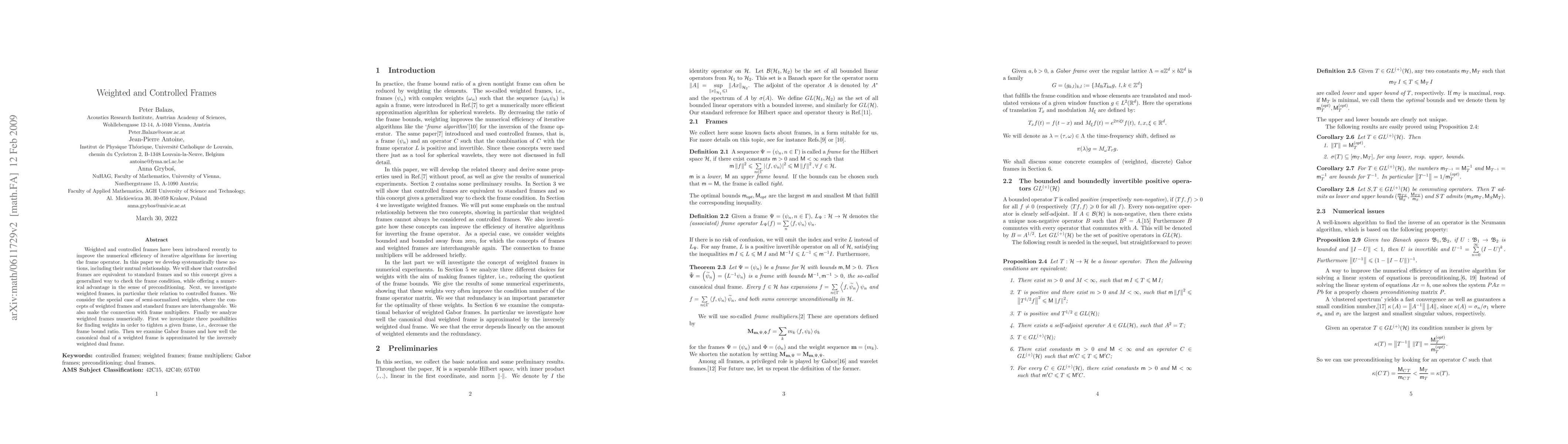 This paper develops a systematic understanding of weighted and controlled frames in iterative algorithms for frame inversion, offering numerical advantages and connections to standard frames and frame multipliers.
