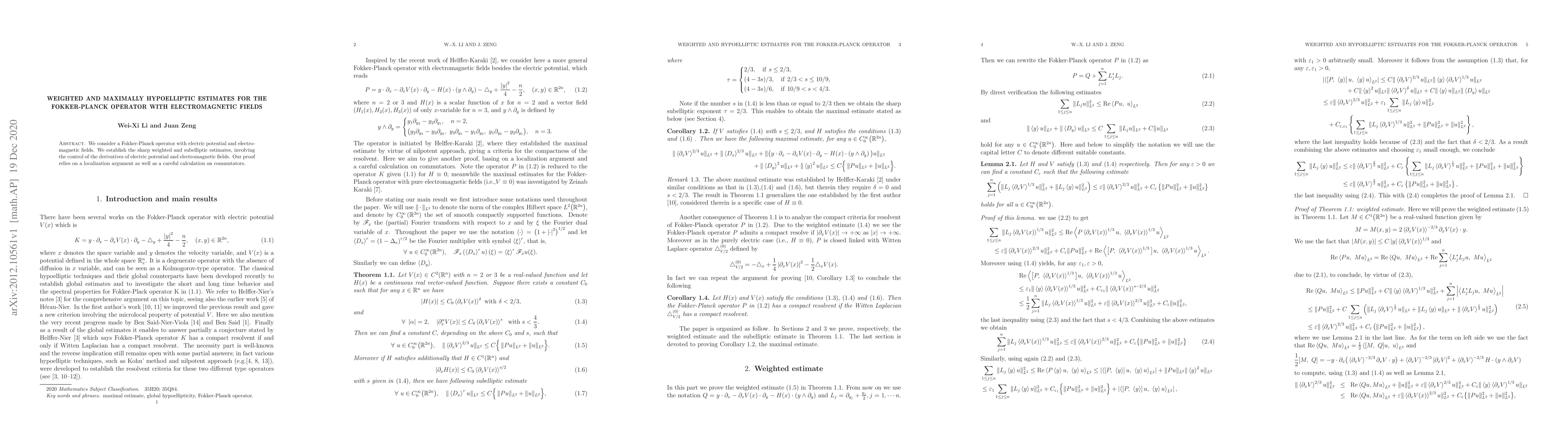 Summary: This paper establishes sharp weighted and subelliptic estimates for a Fokker-Planck operator influenced by electric potential and electromagnetic fields, utilizing localization arguments and detailed commutator calculations. The results control the derivatives of the electric potential and electromagnetic fields.