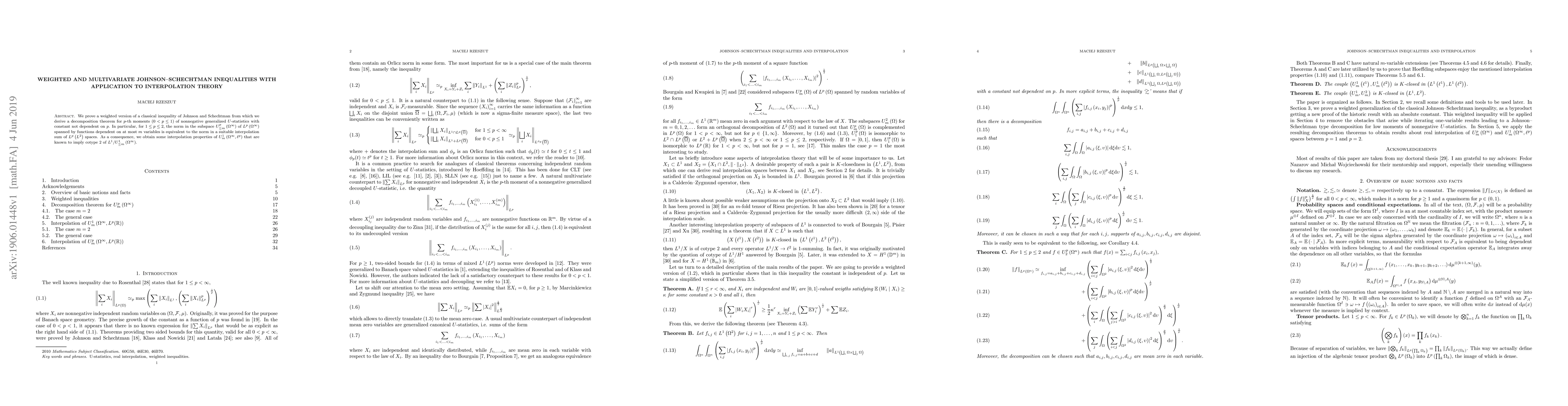 This paper proves a weighted version of the Johnson-Schechtman inequality, leading to a decomposition theorem for $p$-th moments of nonnegative generalized $U$-statistics. It establishes norm equivalence in interpolation spaces, implying cotype 2 properties for $L^1/U_{\leq m}^1\left(\Omega^\infty\right)$.