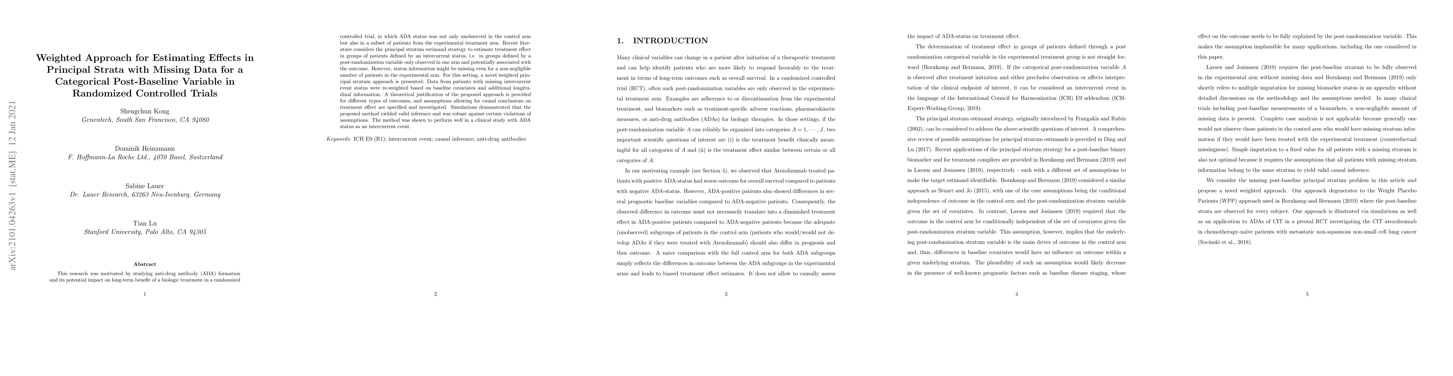 Researchers develop a weighted approach to estimate treatment effects in randomized controlled trials with missing data for a categorical post-baseline variable, improving accuracy and robustness.