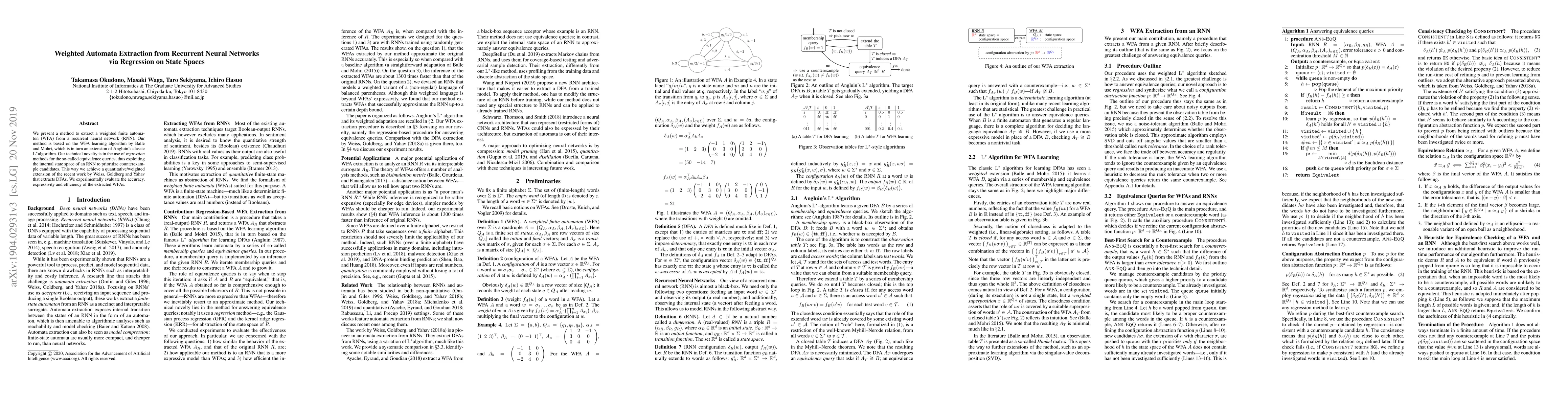 Researchers developed a method to extract weighted finite automata from recurrent neural networks using regression on state spaces, achieving a quantitative extension of existing DFA extraction methods with improved accuracy, expressivity, and efficiency.