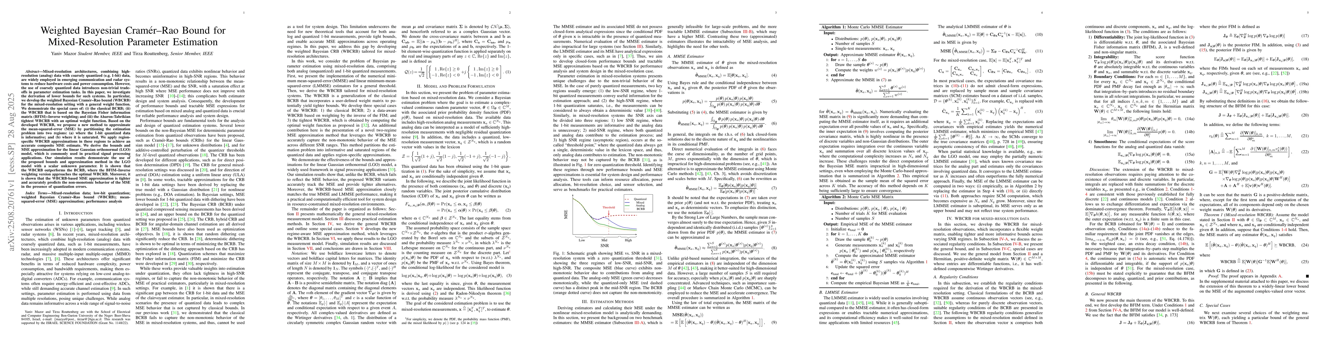 Mixed-resolution architectures, combining high-resolution (analog) data with coarsely quantized (e.g., 1-bit) data, are widely employed in emerging communication and radar systems to reduce hardware costs and power consumption. However, the use of coarsely quantized data introduces non-trivial tradeoffs in parameter estimation tasks. In this paper, we investigate the derivation of lower bounds for such systems. In particular, we develop the weighted Bayesian Cramer-Rao bound (WBCRB) for the mixed-resolution setting with a general weight function. We demonstrate the special cases of: (i) the classical BCRB; (ii) the WBCRB that is based on the Bayesian Fisher information matrix (BFIM)-Inverse weighting; and (iii) the Aharon-Tabrikian tightest WBCRB with an optimal weight function. Based on the developed WBCRB, we propose a new method to approximate the mean-squared-error (MSE) by partitioning the estimation problem into two regions: (a) where the 1-bit quantized data is informative; and (b) where it is saturated. We apply region-specific WBCRB approximations in these regions to achieve an accurate composite MSE estimate. We derive the bounds and MSE approximation for the linear Gaussian orthonormal (LGO) model, which is commonly used in practical signal processing applications. Our simulation results demonstrate the use of the proposed bounds and approximation method in the LGO model with a scalar unknown parameter. It is shown that the WBCRB outperforms the BCRB, where the BFIM-Inverse weighting version approaches the optimal WBCRB. Moreover, it is shown that the WBCRB-based MSE approximation is tighter and accurately predicts the non-monotonic behavior of the MSE in the presence of quantization errors.
