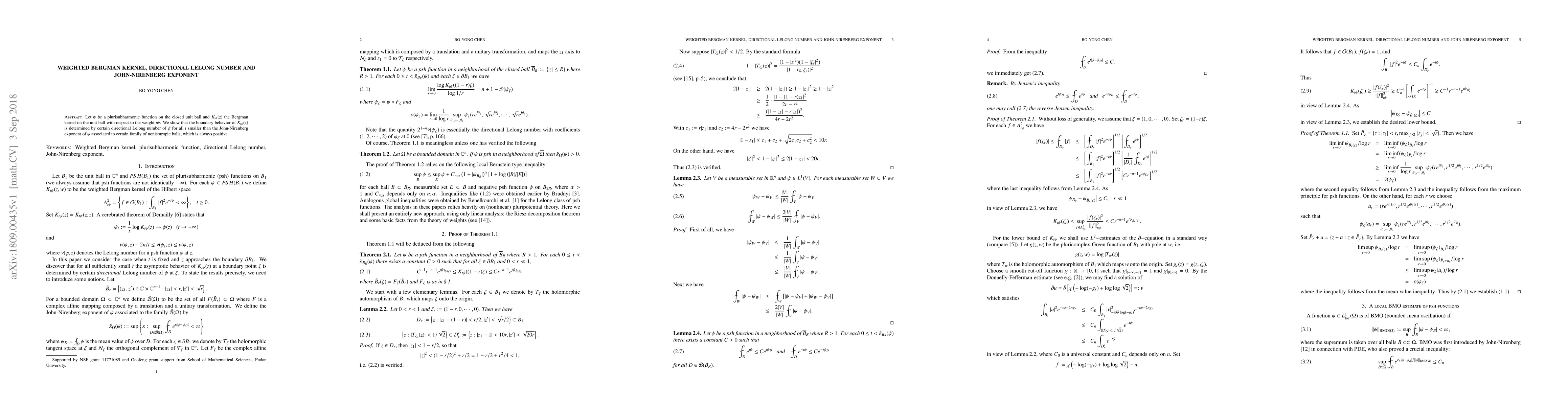 Let $\psi$ be a plurisubharmonic function on the closed unit ball and $K_{t\psi}(z)$ the Bergman kernel on the unit ball with respect to the weight $t\psi$. We show that the boundary behavior of $K_{t\psi}(z)$ is determined by certain directional Lelong number of $\psi$ for all $t$ smaller than the John-Nirenberg exponent of $\psi$ associated to certain family of nonisotropic balls, which is always positive.