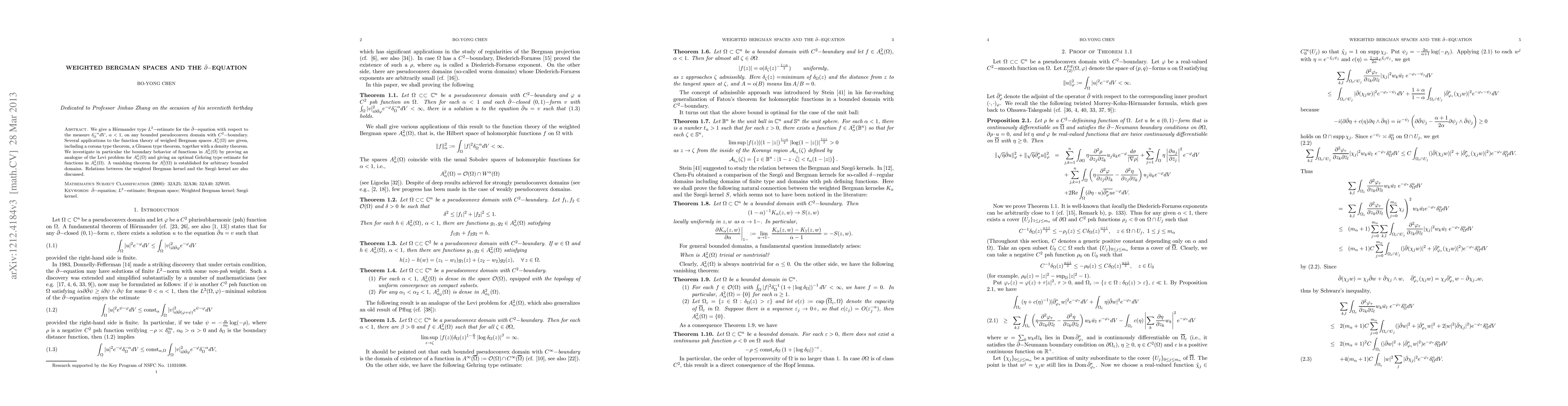 We give a H\"ormander type $L^2-$estimate for the $\bar{\partial}-$equation with respect to the measure $\delta_\Omega^{-\alpha}dV$, $\alpha<1$, on any bounded pseudoconvex domain with $C^2-$boundary. Several applications to the function theory of weighed Bergman spaces $A^2_\alpha(\Omega)$ are given, including a corona type theorem, a Gleason type theorem, together with a density theorem. We investigate in particular the boundary behavior of functions in $A^2_\alpha(\Omega)$ by proving an analogue of the Levi problem for $A^2_\alpha(\Omega)$ and giving an optimal Gehring type estimate for functions in $A^2_\alpha(\Omega)$. A vanishing theorem for $A^2_1(\Omega)$ is established for arbitrary bounded domains. Relations between the weighted Bergman kernel and the Szeg\"o kernel are also discussed.