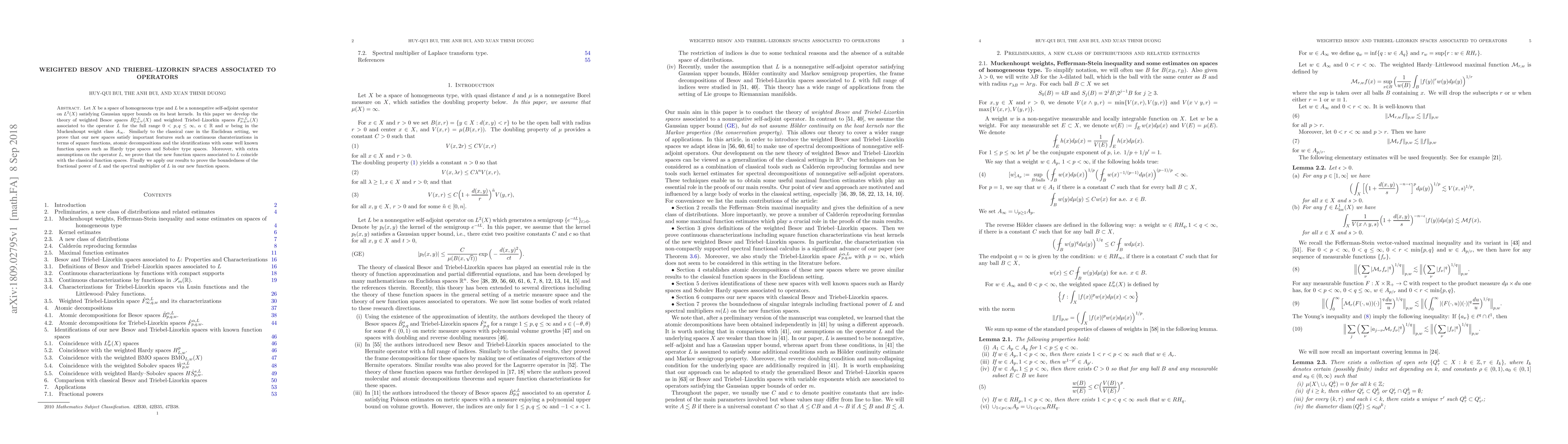 This paper develops a theory for weighted Besov and Triebel-Lizorkin spaces associated with operators on homogeneous type spaces, showing they satisfy key features like continuous characterizations and coincide with classical function spaces under extra assumptions.