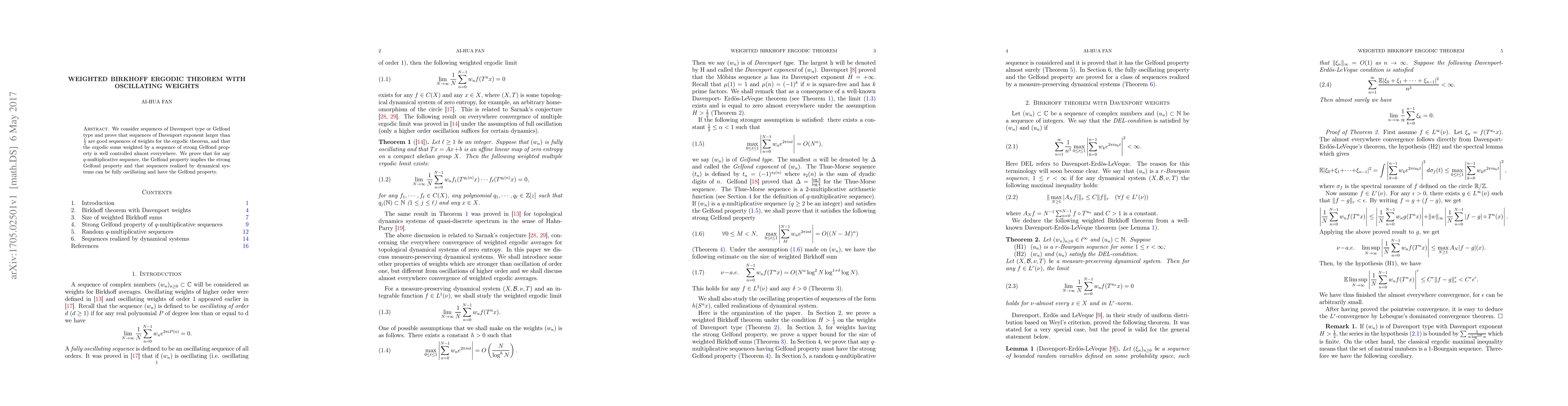 We consider sequences of Davenport type or Gelfond type and prove that sequences of Davenport exponent larger than $\frac{1}{2}$ are good sequences of weights for the ergodic theorem, and that the ergodic sums weighted by a sequence of strong Gelfond property is well controlled almost everywhere. We prove that for any $q$-multiplicative sequence, the Gelfond property implies the strong Gelfond property and that sequences realized by dynamical systems can be fully oscillating and have the Gelfond property.