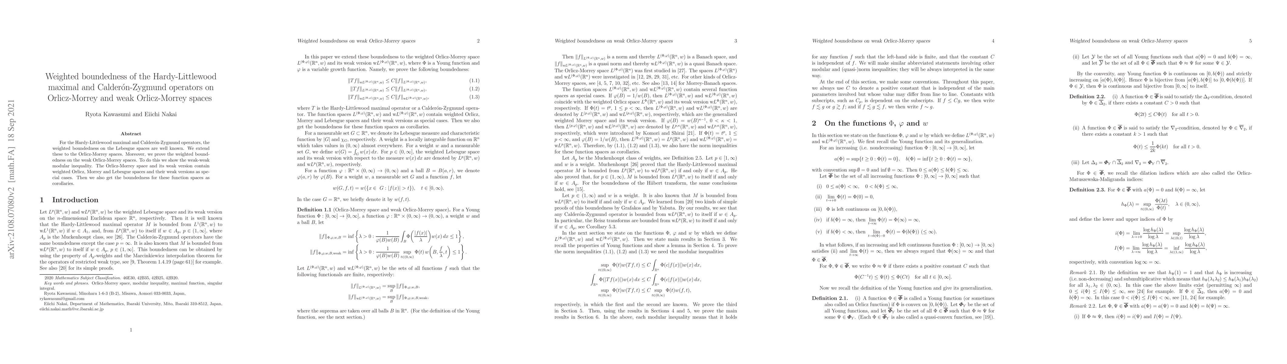 This paper extends the weighted boundedness of Hardy-Littlewood maximal and Calderón-Zygmund operators to Orlicz-Morrey and weak Orlicz-Morrey spaces, utilizing a weak-weak modular inequality. As corollaries, it also proves boundedness for special cases like weighted Orlicz, Morrey, and Lebesgue spaces.