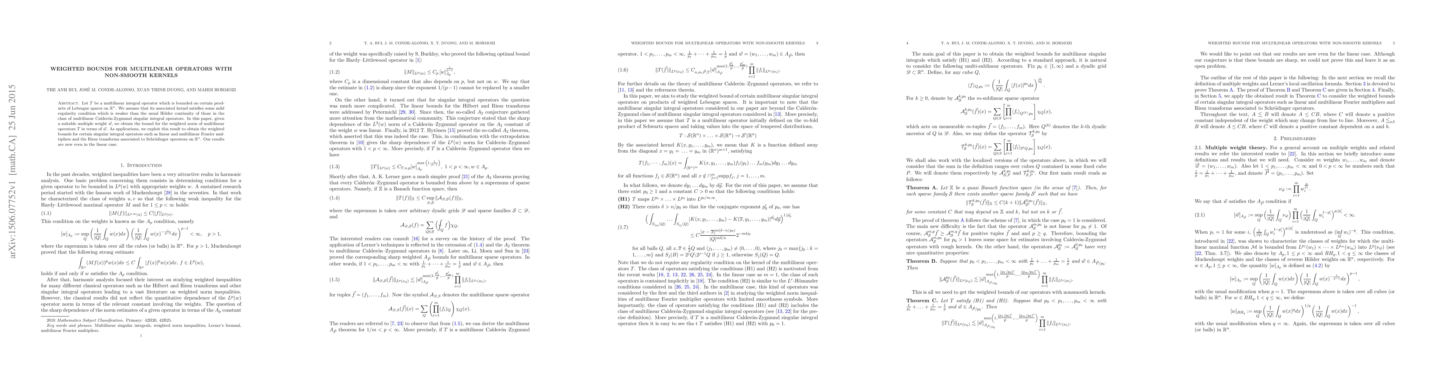 This paper establishes weighted bounds for multilinear operators with non-smooth kernels, demonstrating results for operators bounded on Lebesgue spaces under milder regularity conditions than typical Calderón-Zygmund operators. The findings apply to various singular integral operators, including linear and multilinear Fourier multipliers and Riesz transforms.