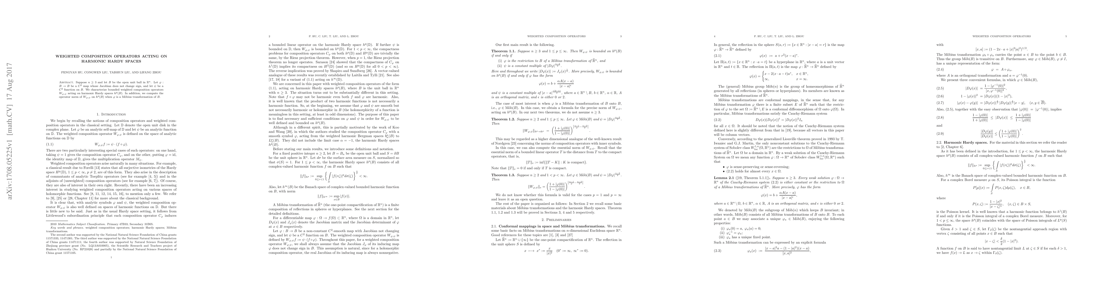 Researchers characterize bounded weighted composition operators on harmonic Hardy spaces, finding that their operator norm depends on a M"obius transformation of the unit ball.
