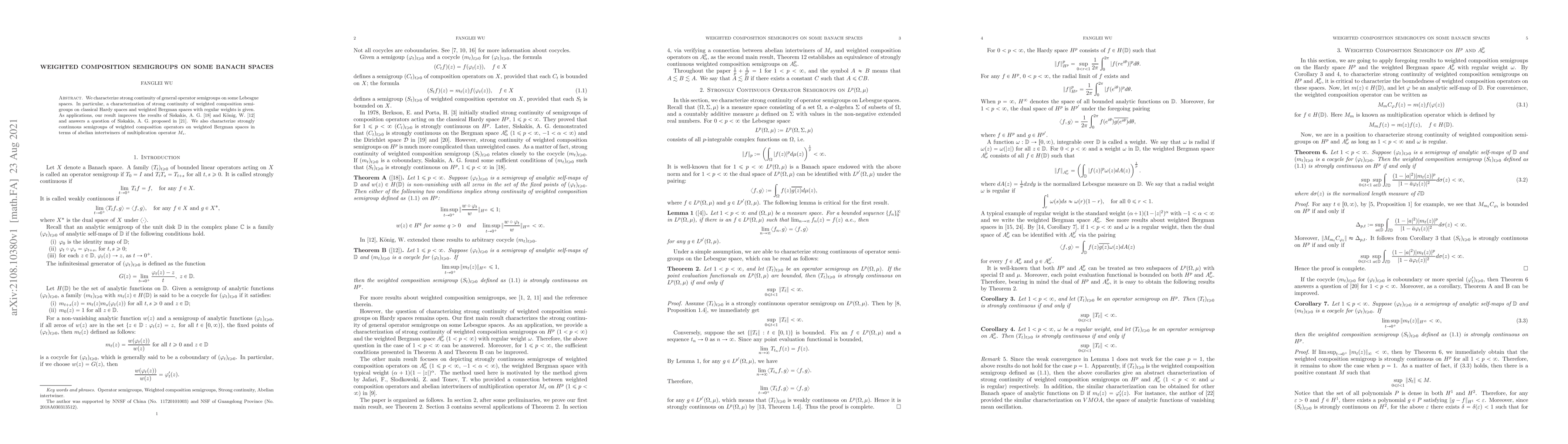 This paper characterizes the strong continuity of weighted composition semigroups on classical Hardy spaces and weighted Bergman spaces, improving prior results and answering a question posed by Siskakis. It also connects these semigroups to abelian intertwiners of multiplication operators on weighted Bergman spaces.