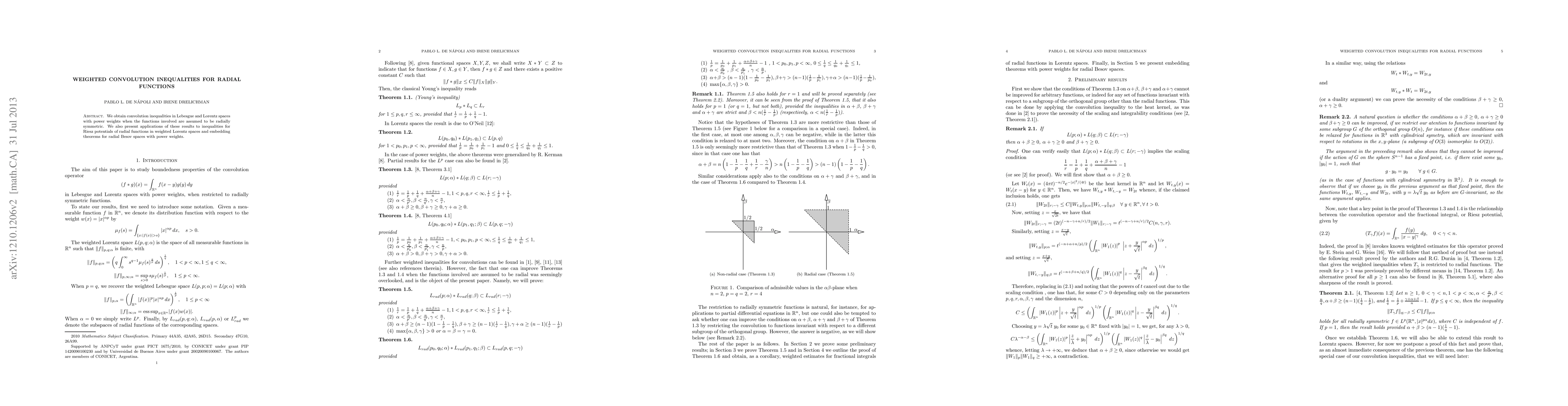 This paper establishes convolution inequalities in Lebesgue and Lorentz spaces with power weights for radially symmetric functions, and applies these results to inequalities for Riesz potentials and embedding theorems for radial Besov spaces with power weights.