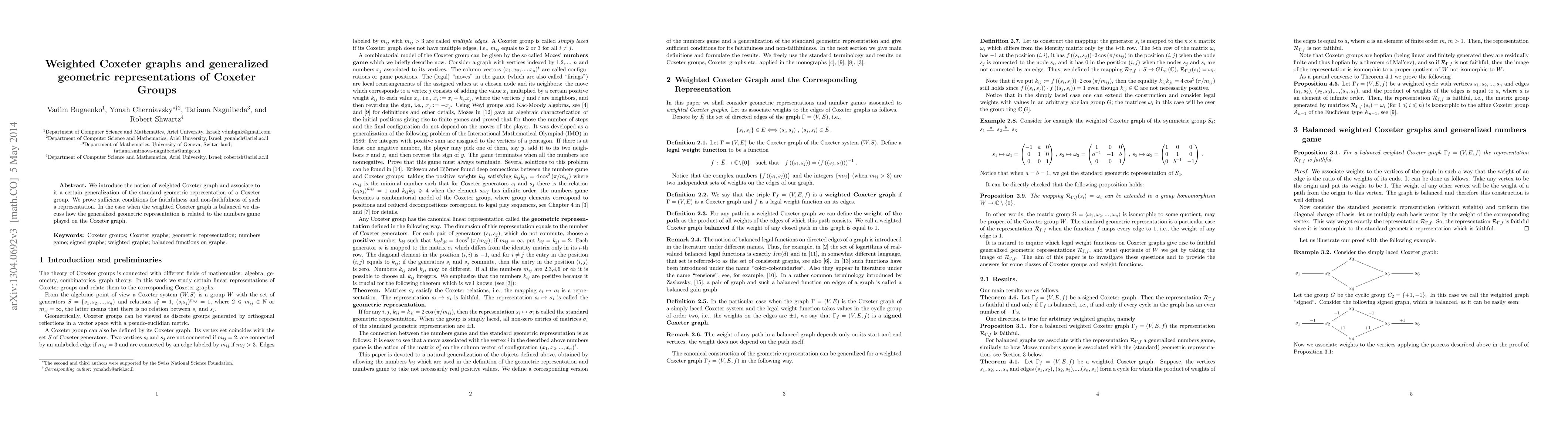 This paper introduces weighted Coxeter graphs and their associated generalized geometric representations of Coxeter groups, proving conditions for their faithfulness and non-faithfulness. When balanced, these representations relate to the numbers game on the Coxeter graph.