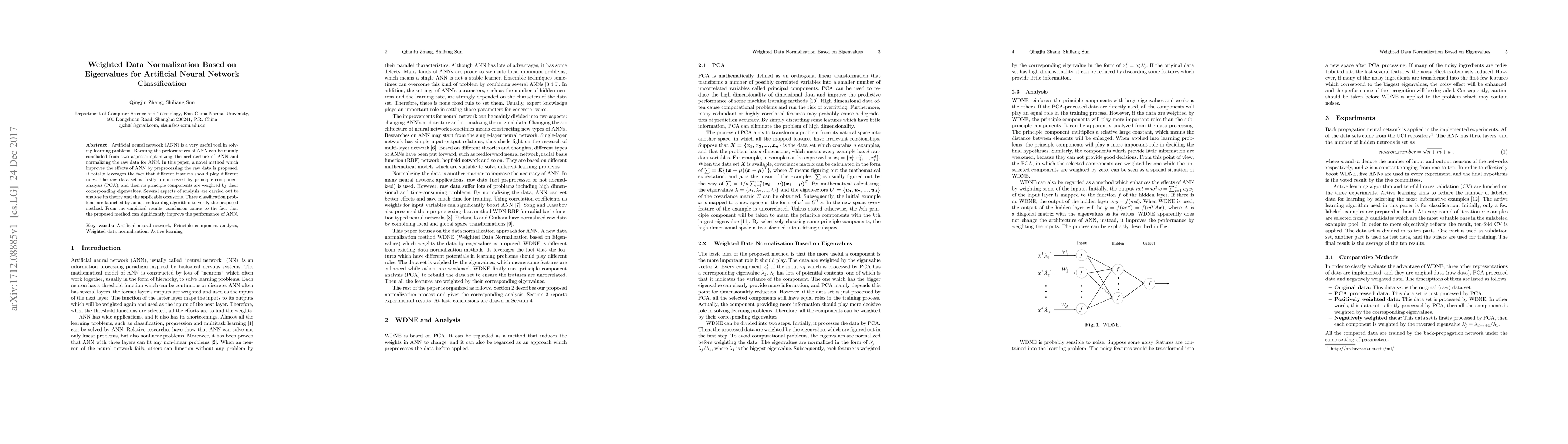This paper proposes a novel weighted data normalization method based on eigenvalues for enhancing artificial neural network (ANN) performance. It leverages PCA to preprocess the data and weights the principal components by their eigenvalues, significantly improving ANN classification results in empirical tests.