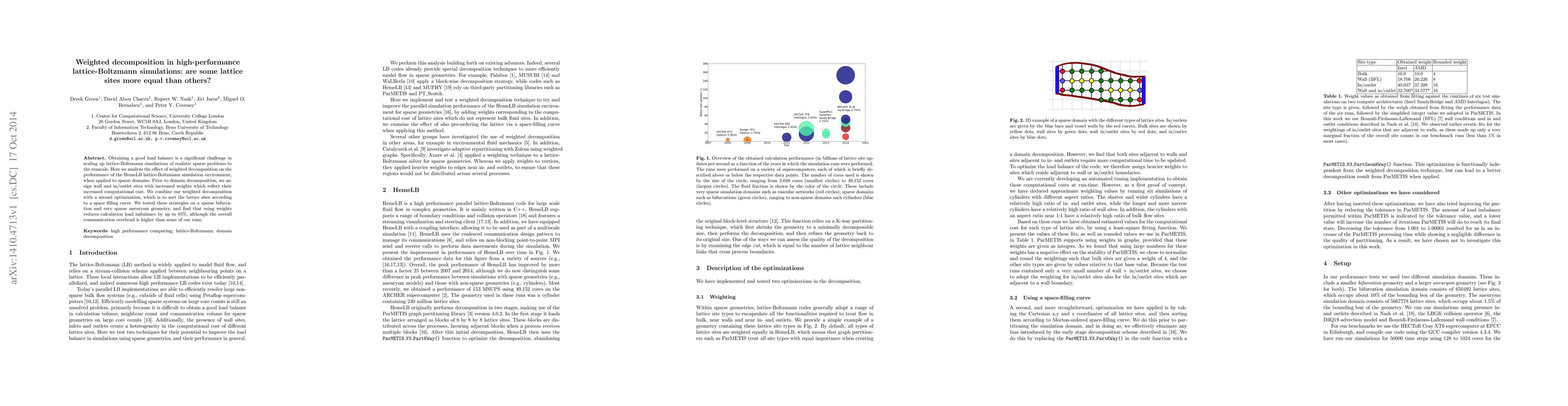 This paper investigates the impact of weighted decomposition on load balancing in high-performance lattice-Boltzmann simulations, particularly for sparse domains. The authors propose assigning higher weights to computationally intensive wall and inlet/outlet sites, combined with a sorting optimization based on a space-filling curve, which significantly reduces load imbalance by up to 85% in tested sparse geometries.