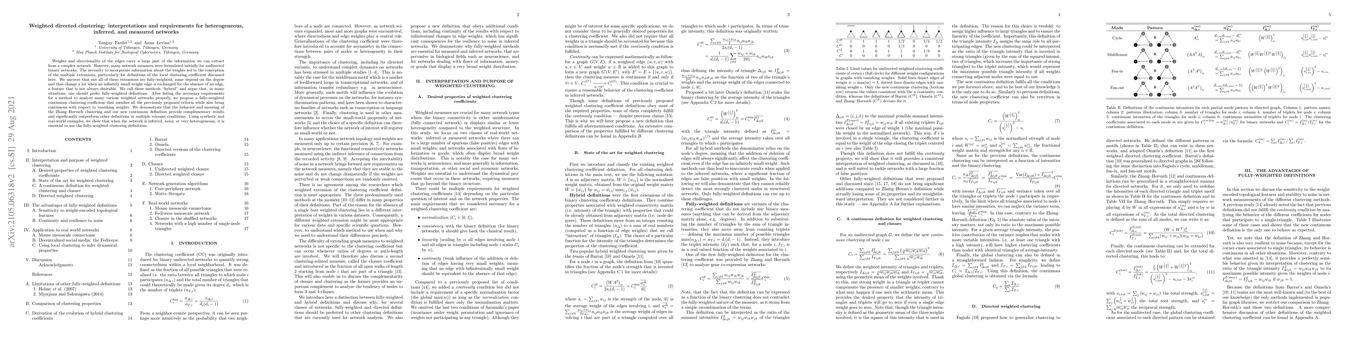 Weights and directionality of the edges carry a large part of the information we can extract from a complex network. However, many network measures were formulated initially for undirected binary networks. The necessity to incorporate information about the weights led to the conception of the multiple extensions, particularly for definitions of the local clustering coefficient discussed here. We uncover that not all of these extensions are fully-weighted; some depend on the degree and thus change a lot when an infinitely small weight edge is exchanged for the absence of an edge, a feature that is not always desirable. We call these methods ``hybrid'' and argue that, in many situations, one should prefer fully-weighted definitions. After listing the necessary requirements for a method to analyze many various weighted networks properly, we propose a fully-weighted continuous clustering coefficient that satisfies all the previously proposed criteria while also being continuous with respect to vanishing weights. We demonstrate that the behavior and meaning of the Zhang--Horvath clustering and our new continuous definition provide complementary results and significantly outperform other definitions in multiple relevant conditions. Using synthetic and real-world examples, we show that when the network is inferred, noisy, or very heterogeneous, it is essential to use the fully-weighted clustering definitions.
