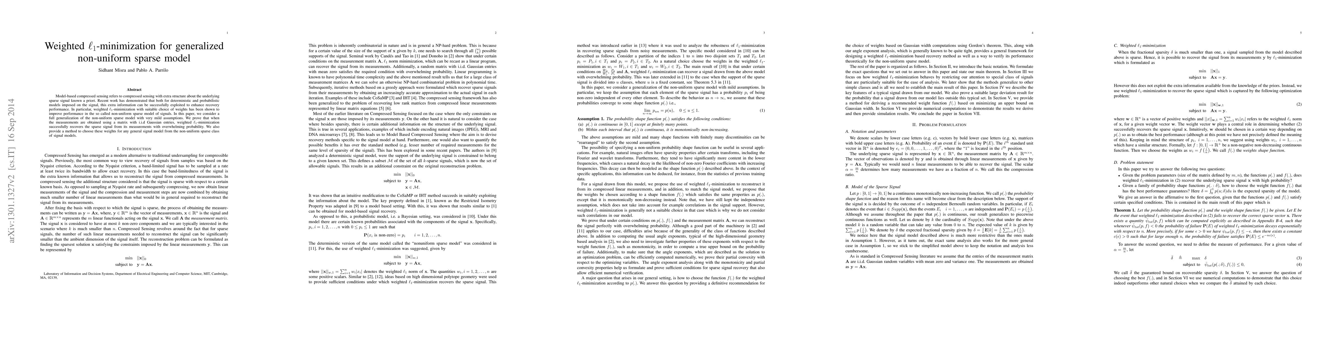 This paper explores weighted $\ell_1$-minimization for a generalized non-uniform sparse signal model, demonstrating its effectiveness in recovering sparse signals from compressed measurements. It proves successful recovery under mild assumptions and provides a method for selecting optimal weights for any signal within the non-uniform sparse class.