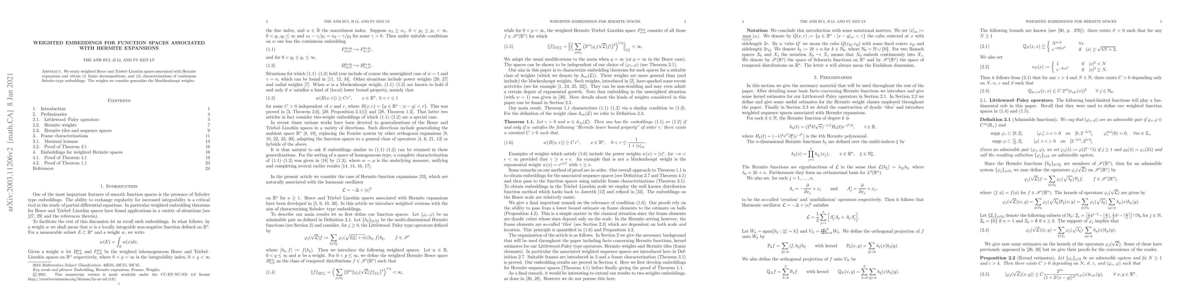 Summary: This paper explores weighted Besov and Triebel-Lizorkin spaces related to Hermite expansions, achieving frame decompositions and characterizing continuous Sobolev-type embeddings using generalized Muckenhoupt weights.