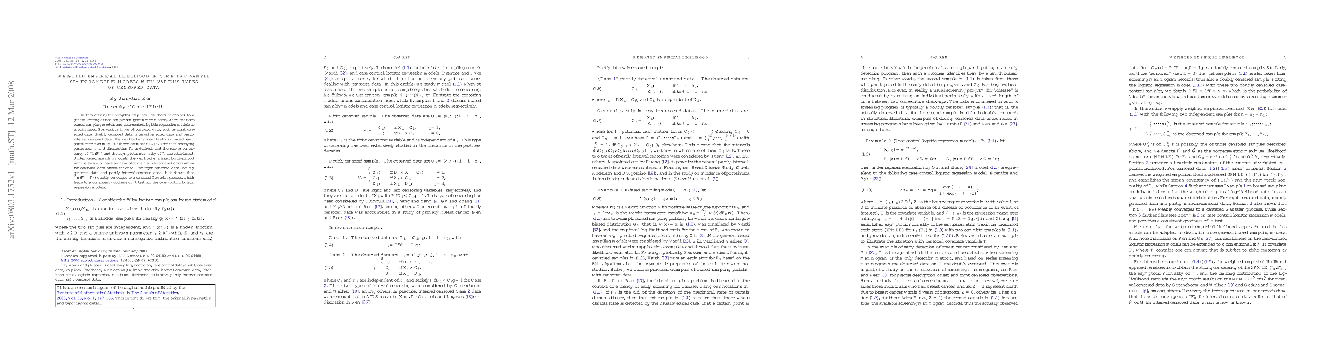 This paper applies weighted empirical likelihood to two-sample semiparametric models with various types of censored data, deriving estimators and proving their consistency and asymptotic normality. It also establishes an asymptotic distribution for the weighted empirical log-likelihood ratio under biased sampling models.
