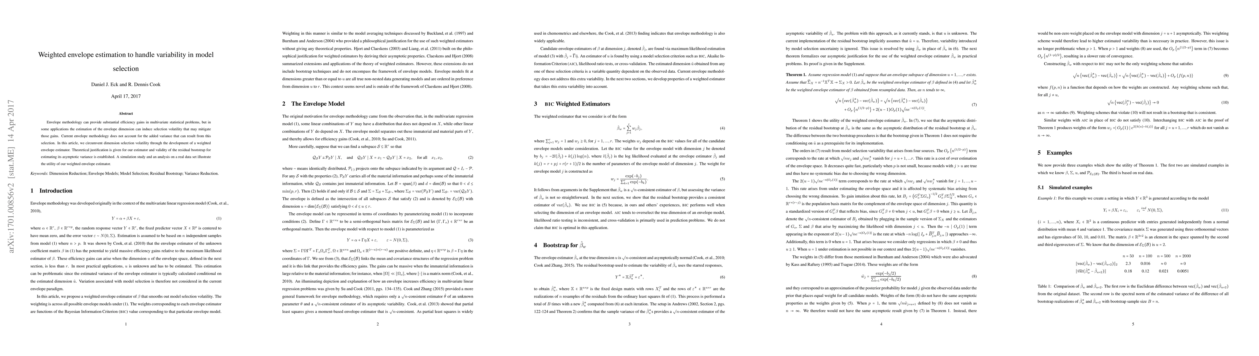 A new method called weighted envelope estimation is developed to address variability in model selection, providing a more stable approach than existing methods.