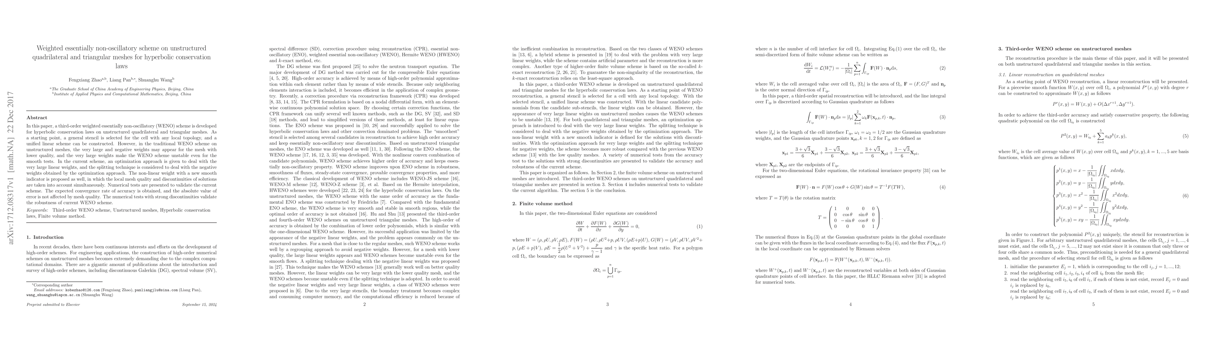 This paper develops a third-order weighted essentially non-oscillatory (WENO) scheme for hyperbolic conservation laws on unstructured quadrilateral and triangular meshes, addressing instability caused by large weights and negative weights through an optimization approach and a new non-linear weight with a smooth indicator. Numerical tests confirm its accuracy and robustness.