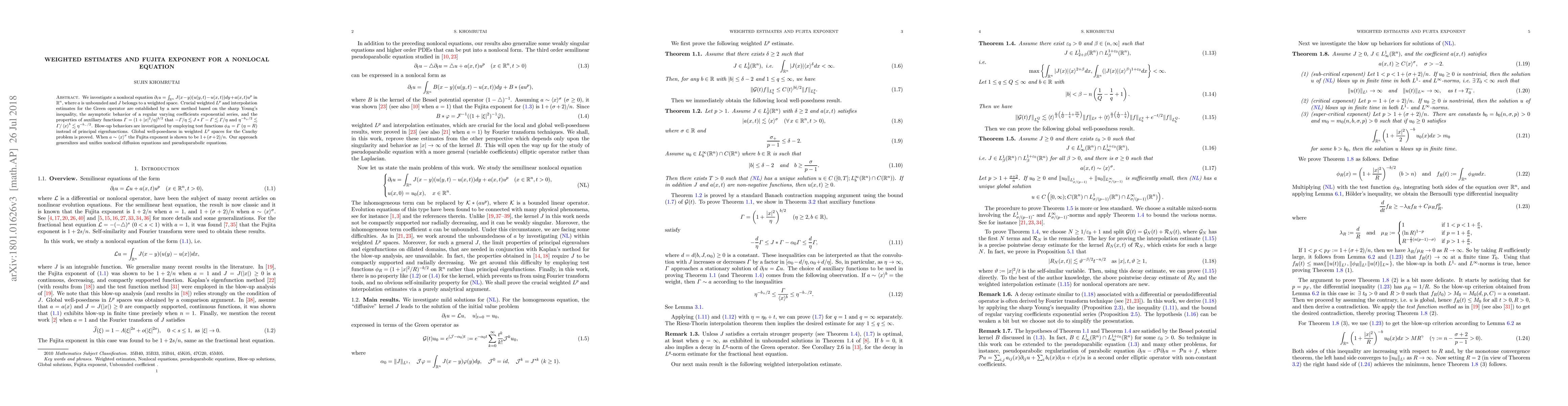 This paper investigates a nonlocal equation with global well-posedness in weighted L^p spaces and finds the Fujita exponent to be 1 + (σ+2)/n for pseudoparabolic equations.