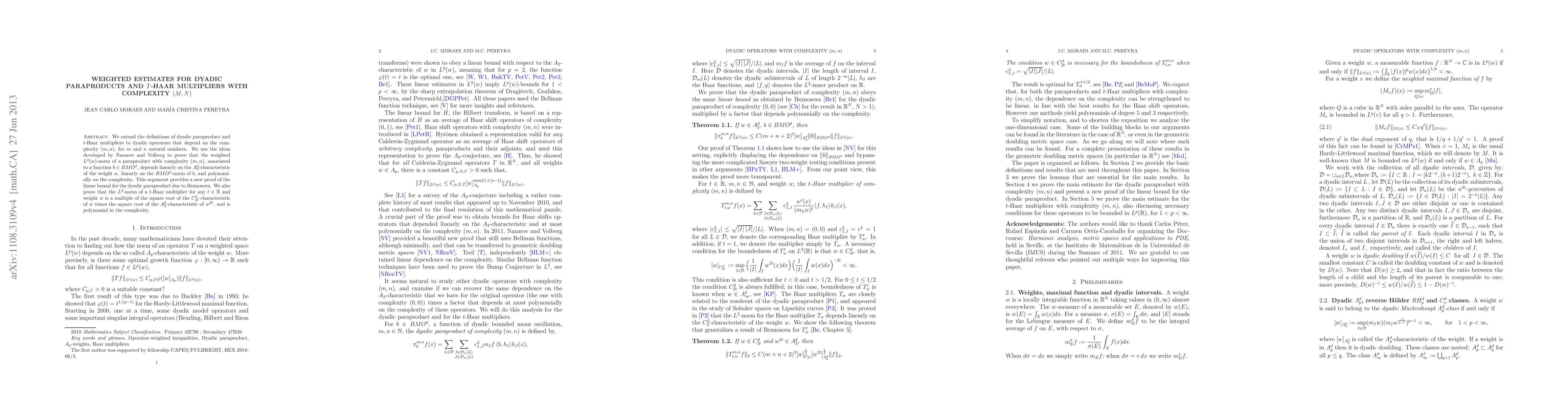 This paper extends dyadic paraproducts and t-Haar multipliers to operators based on complexity (m,n), proving that the weighted L^2-norm of these operators depends linearly on the A_2-characteristic of the weight, the BMO-norm of the associated function, and polynomially on complexity. It also establishes a similar dependency for t-Haar multipliers, with a result analogous to Beznosova's for (0,0)-complexity.