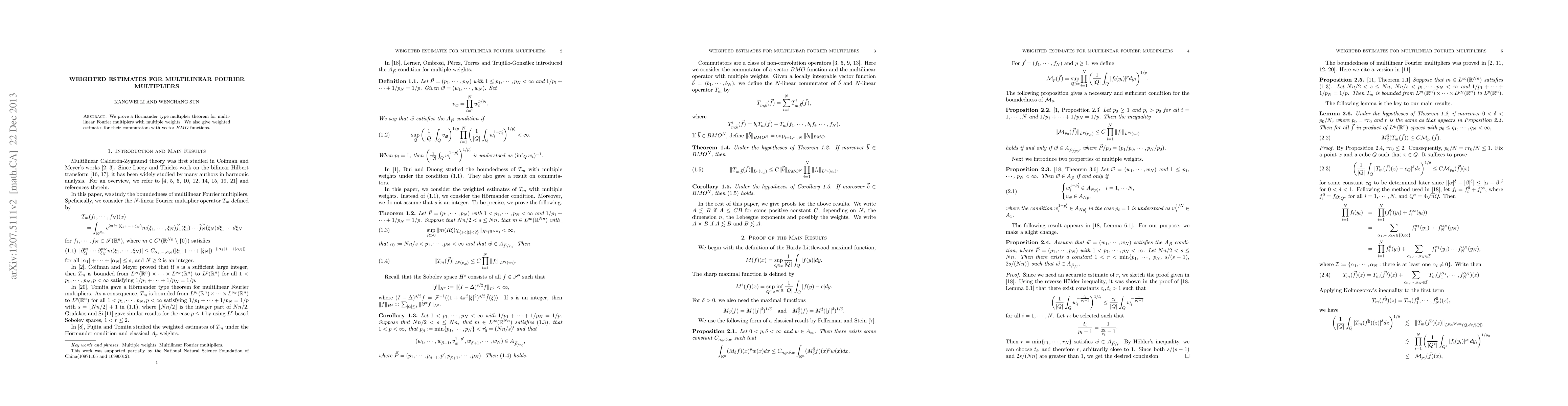 This paper presents a H"{o}rmander type theorem for multilinear Fourier multipliers with multiple weights, and also provides weighted estimates for their commutators with vector BMO functions.