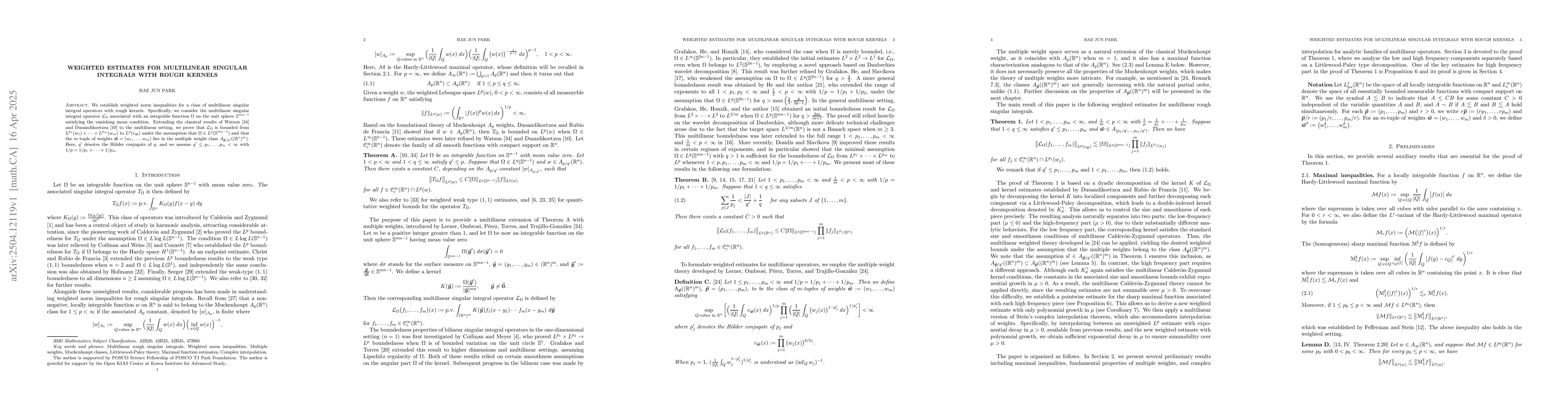 The research establishes weighted norm inequalities for multilinear singular integral operators with rough kernels, extending classical results to the multilinear setting.