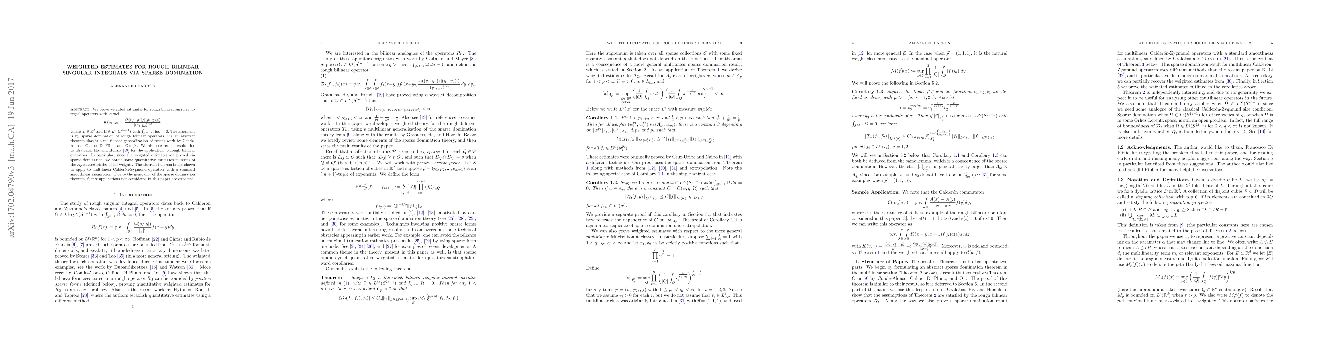 This paper proves weighted estimates for rough bilinear singular integral operators using sparse domination techniques, generalizing recent work and applying multilinear Calderón-Zygmund operator theory. The estimates are quantified in terms of $A_{p}$ characteristics of the weights, with potential for broader applications.