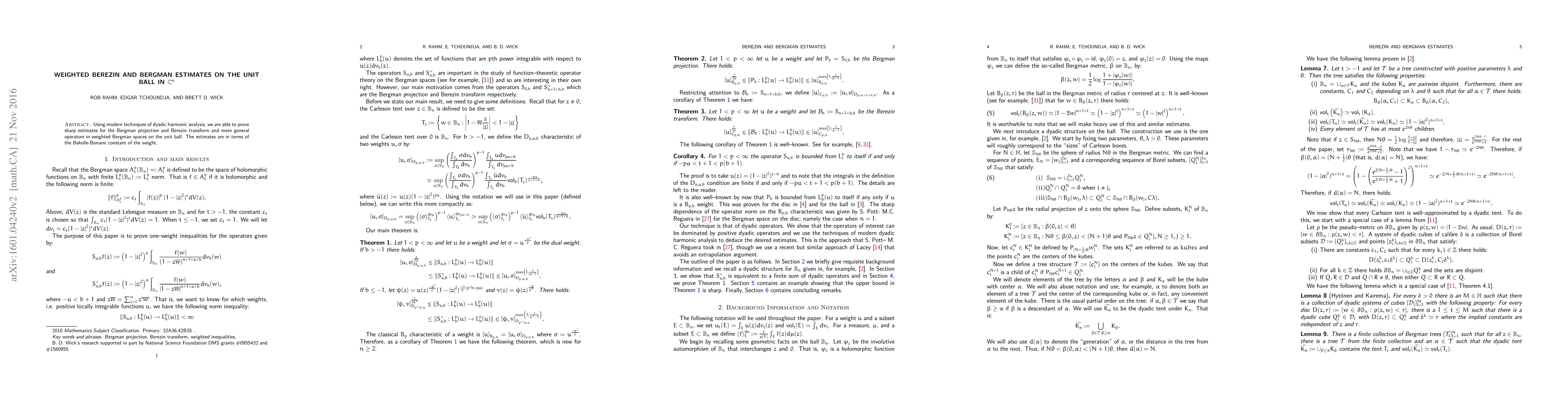 Summary: This paper employs advanced dyadic harmonic analysis techniques to establish precise weighted estimates for the Bergman projection and Berezin transform on the unit ball in $\mathbb{C}^n$, with results expressed in terms of the Bekolle-Bonami constant of the weight.
