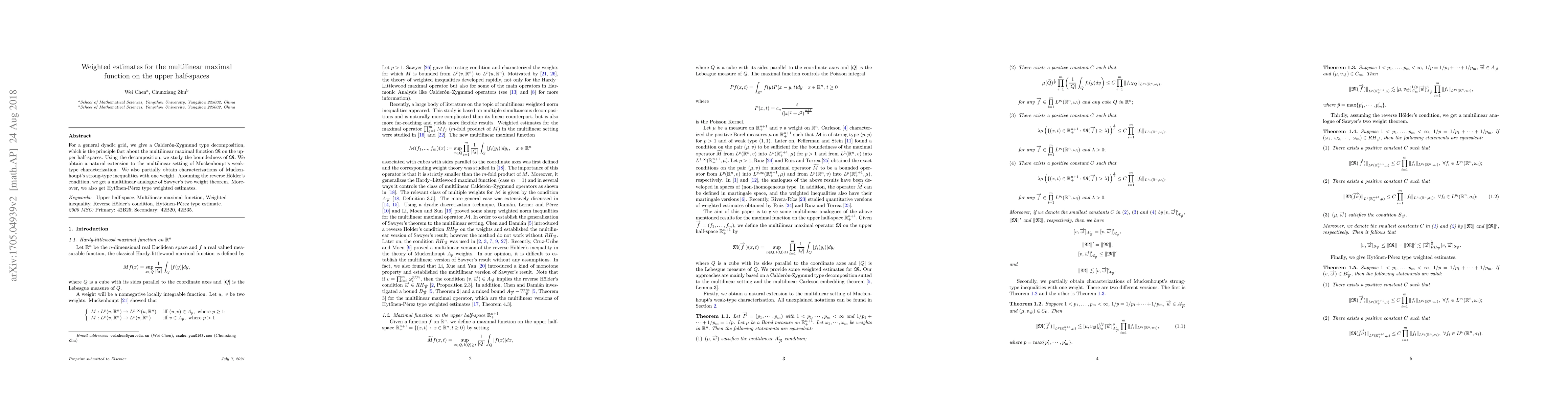 The paper presents a Calderén-Zygmund type decomposition for the multilinear maximal function on upper half-spaces, leading to new bounds and characterizations of inequalities in the weighted setting.