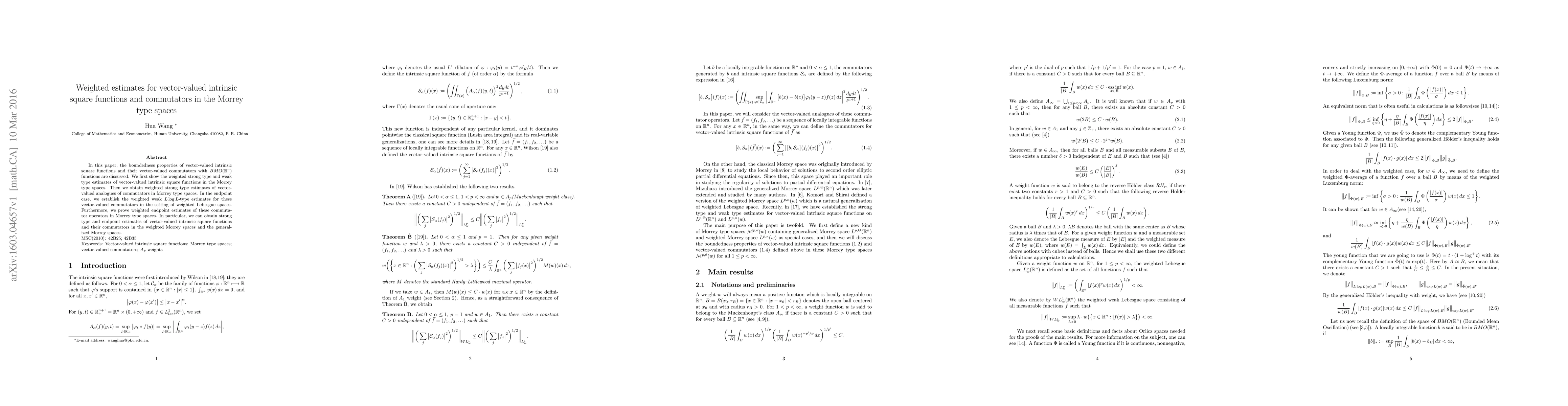 This paper investigates the boundedness properties of vector-valued intrinsic square functions and their commutators with $BMO(\mathbb R^n)$ functions in Morrey type spaces. It establishes weighted strong and weak type estimates for these functions and their commutators, including endpoint $L\log L$-type estimates in weighted Lebesgue spaces.